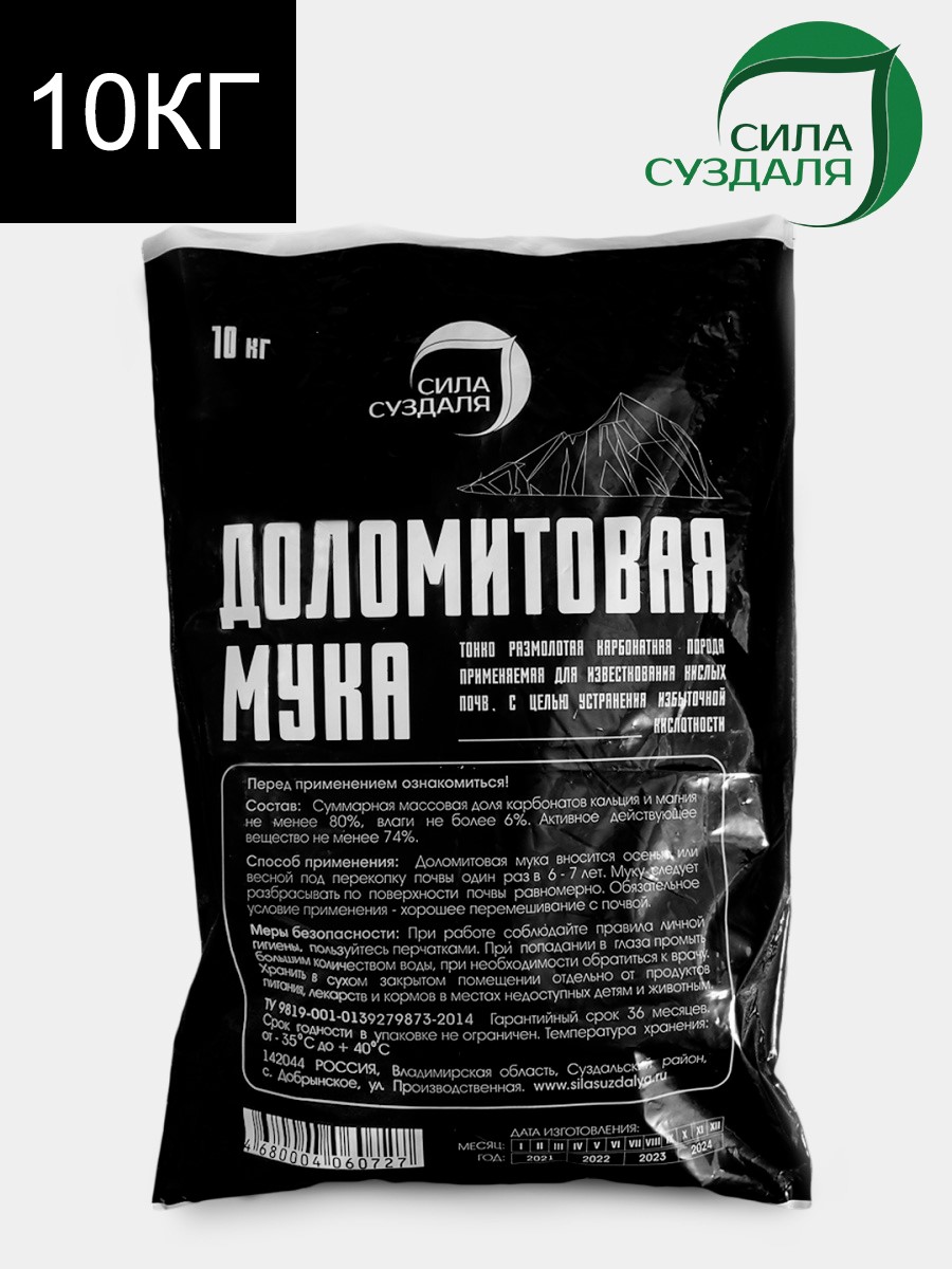Доломитовая мука удобрение натурального происхождения, добываемое путем измельчения горной породы доломит. В основе данного вещества находится кальций, который понижает кислотность почвы, повышает химические и физические показатели грунта.В состав доломитки входит и множество других полезных минералов и прочих веществ, важных для роста и развития растений. Благодаря полностью натуральному составу известняковая мука от Сила Суздаля обладает рядом полезных свойств, насыщает почву полезными веществами, понижает кислотность грунта, эффективно борется с вредителями и насекомыми-паразитами;нейтрализует радионуклиды;повышает эффективность других удобрений делает землю более рыхлой и структурной.